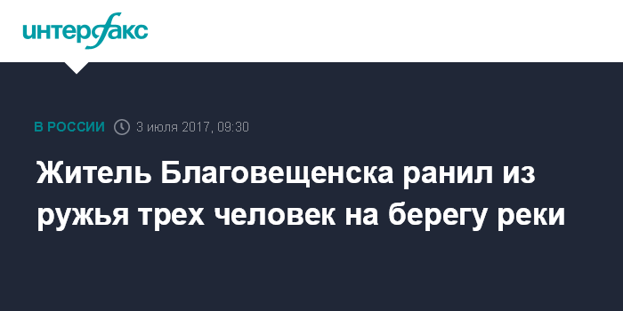 Москва. 3 июля. INTERFAX.RU - Житель Благовещенска ранил из ружья трех человек на берегу реки Зея в Амурской области, сообщает областное СУ СКР.