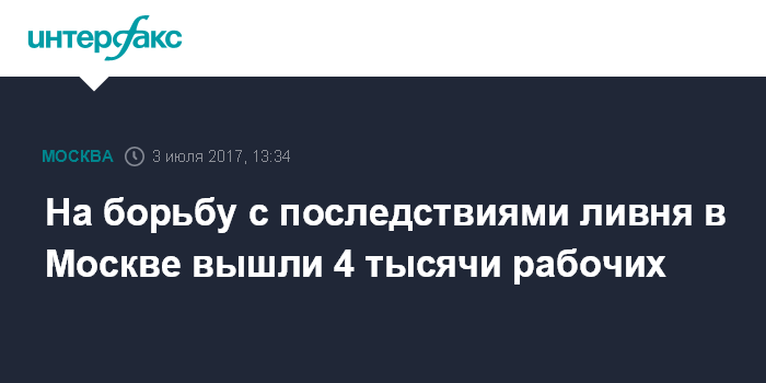 На борьбу с последствиями ливня в Москве вышли 4 тысячи рабочих