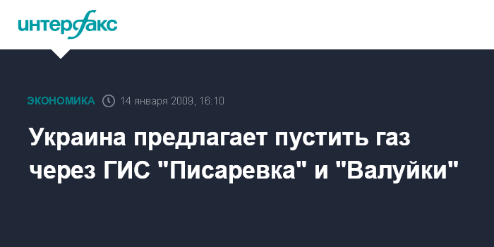 "На ваш запрос (запрос "Газпрома" о прокачке газа на Балканы - ИФ) отвечаем, что для прокачки через территорию Украины при подаче через ГИС "Орловка" и "Ужгород" прошу обеспечить поступление природного газа в ГТС "Укртрансгаз" через ГИС "Писаревка" и ГИС "Валуйки" в аналогичных объемах. При этом прошу предусмотреть подачу 140 млн кубометров для возобновления запасов", - процитировал Сечин полученное "Газпромом" письмо.