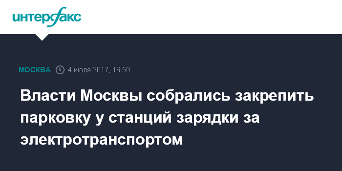 Москва. 4 июля. INTERFAX.RU - Столичные власти предлагают законодательно запретить парковку у станций зарядки электромобилей другого транспорта.
