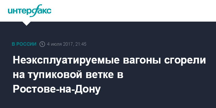 Москва. 4 июля. INTERFAX.RU - Ростовские пожарные ликвидировали возгорание трех вагонов и локомотива на тупиковой ветке, говорится в сообщении на сайте регионального управления МЧС.