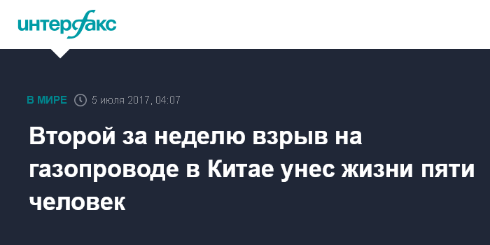 Второй за неделю взрыв на газопроводе в Китае унес жизни пяти человек