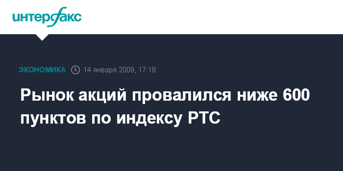 Москва. 14 января. INTERFAX.RU - Российский рынок акций к вечеру среды провалился ниже 600 пунктов по индексу РТС после выхода слабых статданных по экономике США, спровоцировавших продажи выросших за последние дни бумаг.