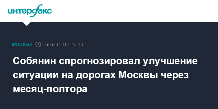 Москва. 5 июля. INTERFAX.RU - Мэр Москвы Сергей Собянин считает, что транспортная ситуация в столице, осложненная работами по реконструкции улиц, улучшится в течение ближайших полутора месяцев.