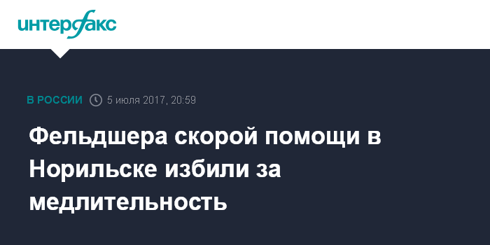 Фельдшера скорой помощи в Норильске избили за медлительность