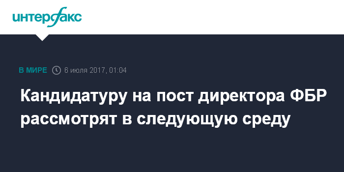 Кандидатуру на пост директора ФБР рассмотрят в следующую среду
