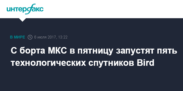 Москва. 6 июля. INTERFAX.RU - Астронавты на Международной космической станции запустят в пятницу спутники Bird, созданные при участии Ганы, Монголии, Нигерии и Бангладеш. Об этом сообщил "Интерфаксу" источник в ракетно-космической отрасли.