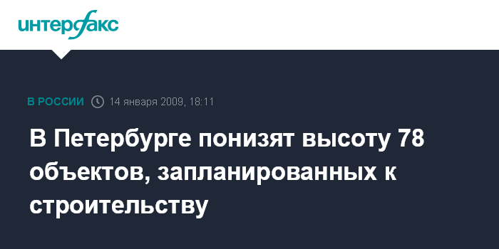 Москва. 14 января. INTERFAX.RU - Комиссия по правилам землепользования и застройки Петербурга на заседании в среду приняла решение понизить высоту 78 объектов, намеченных к строительству, сообщил журналистам вице-губернатор города Александр Вахмистров.