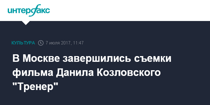 Москва. 7 июля. INTERFAX.RU - В Москве завершились съемки фильма "Тренер" - режиссерского дебюта актера Данилы Козловского, выход картины в прокат намечен на 19 апреля 2018 года, сообщили журналистам в пятницу в пресс-службе фильма.