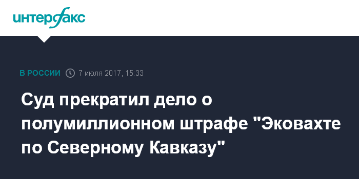 Суд прекратил дело о полумиллионном штрафе "Эковахте по Северному Кавказу"