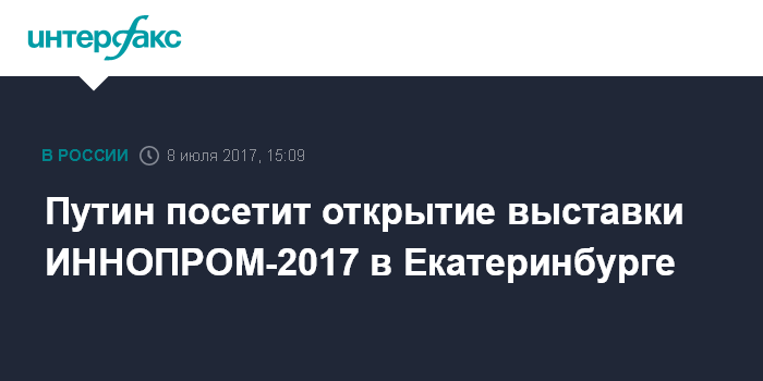 Путин посетит открытие выставки ИННОПРОМ-2017 в Екатеринбурге