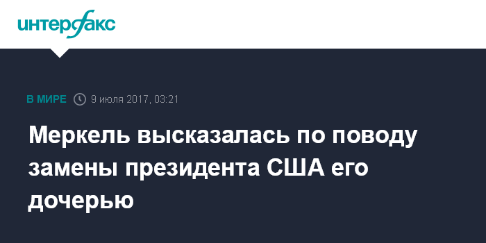 По мнению Меркель, каждая страна сама решает, кто будет представлять ее на официальных встречах. Германия воспринимает Иванку Трамп как неотъемлемую часть американской делегации. "Известно, что она работает в Белом доме и участвует в определенных инициативах", - сказала Меркель.