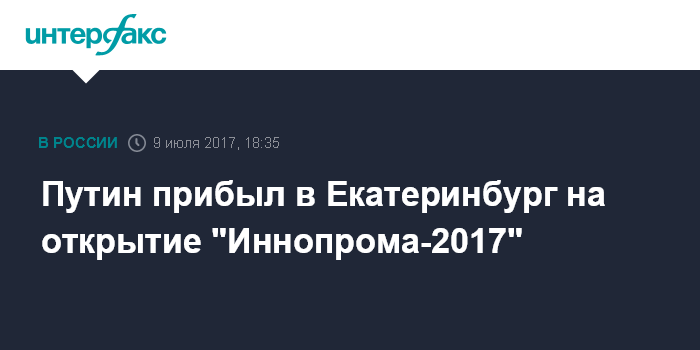 Москва. 9 июля. INTERFAX.RU - Президент России Владимир Путин прибыл с двухдневной поездкой в Екатеринбург, где примет участие в открытии международной промышленной выставки "Иннопром-2017".