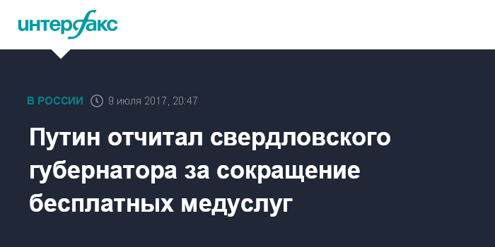Путин отчитал свердловского губернатора за сокращение бесплатных медуслуг