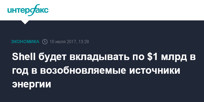 Москва. 10 июля. INTERFAX.RU - Royal Dutch Shell планирует вкладывать до $1 млрд в год в подразделение New Energies, занимающееся развитием возобновляемых источников энергии, заявил главный исполнительный директор компании Бен ван Берден в рамках 22-го Мирового нефтяного конгресса (WPC 2017) в Стамбуле.