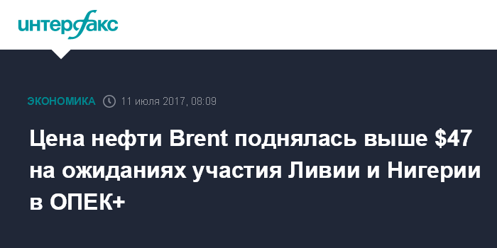 Цена нефти Brent поднялась выше $47 на ожиданиях участия Ливии и Нигерии в ОПЕК+