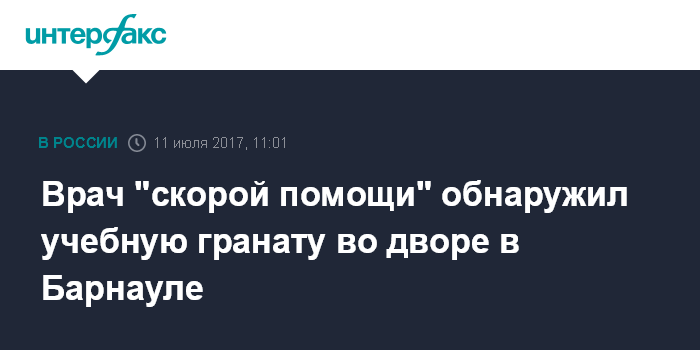 Москва. 11 июля. INTERFAX.RU - Полицейские в Барнауле проверяют информацию об обнаружении гранаты в одном из дворов города, сообщает во вторник пресс-центр городской мэрии.