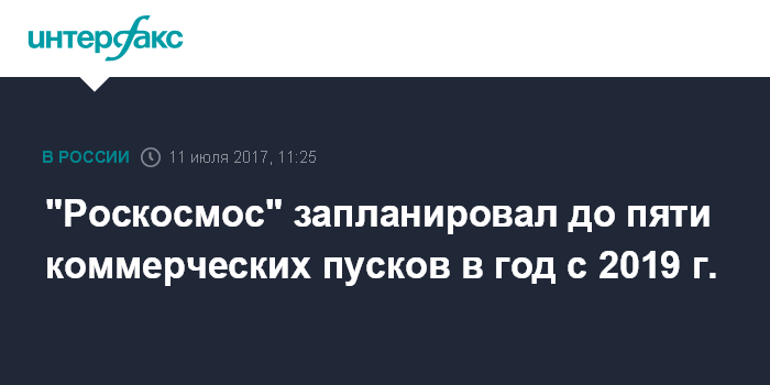 "Роскосмос" запланировал до пяти коммерческих пусков в год с 2019 г.
