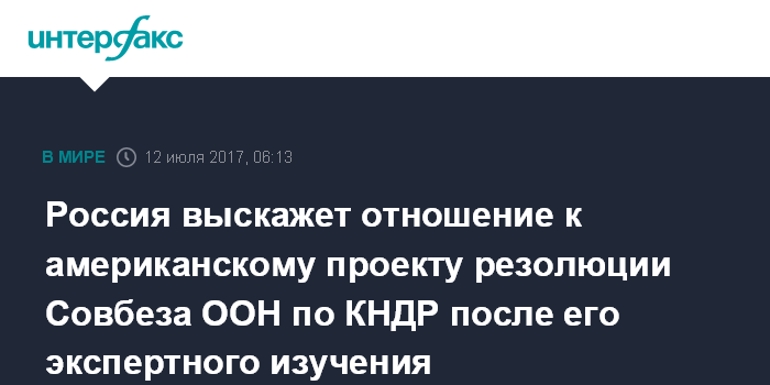 Россия выскажет отношение к американскому проекту резолюции Совбеза ООН по КНДР после его экспертного изучения