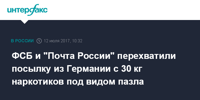 ФСБ и "Почта России" перехватили посылку из Германии с 30 кг наркотиков под видом пазла