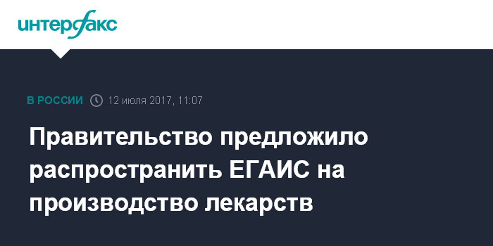 Москва. 12 июля. INTERFAX.RU - Правительство РФ предложило поправки к законопроекту о дополнительных ограничениях оборота алкоголя и спиртосодержащей продукции. В частности, поправки предусматривают распространение ЕГАИС на производство лекарственных средств и медицинских препаратов.