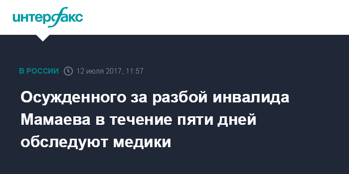 Осужденного за разбой инвалида Мамаева в течение пяти дней обследуют медики