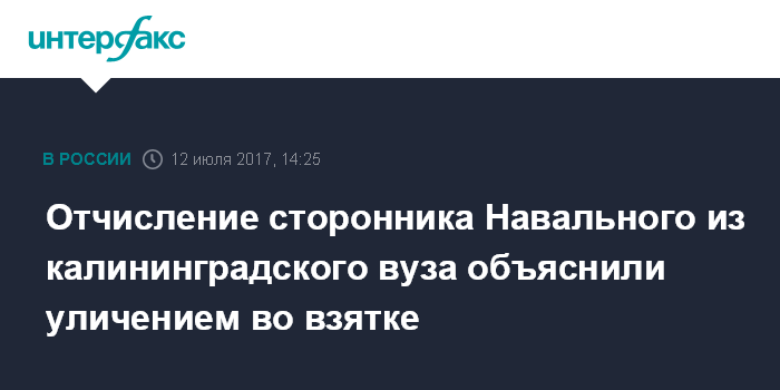 Отчисление сторонника Навального из калининградского вуза объяснили уличением во взятке