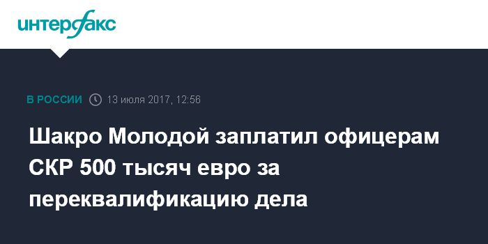 Шакро Молодой заплатил офицерам СКР 500 тысяч евро за переквалификацию дела
