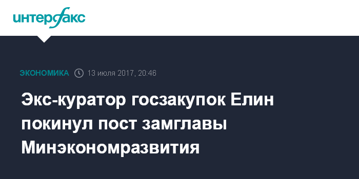 Москва. 13 июля. INTERFAX.RU - Евгений Елин освобожден от должности замглавы Минэкономразвития по его просьбе.