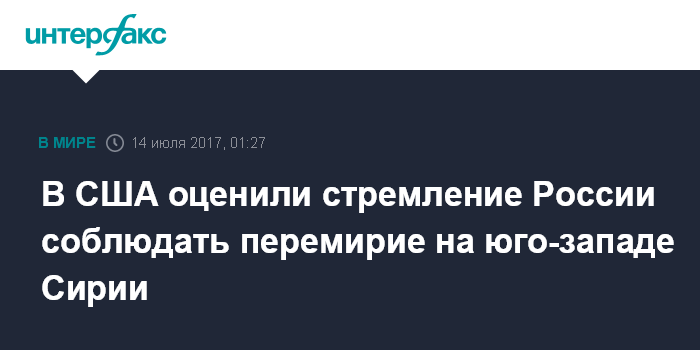 В США оценили стремление России соблюдать перемирие на юго-западе Сирии