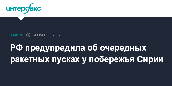 РФ предупредила об очередных ракетных пусках у побережья Сирии