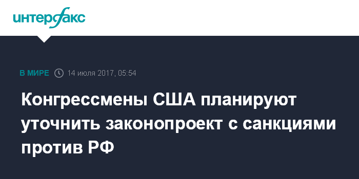 Конгрессмены США планируют уточнить законопроект с санкциями против РФ