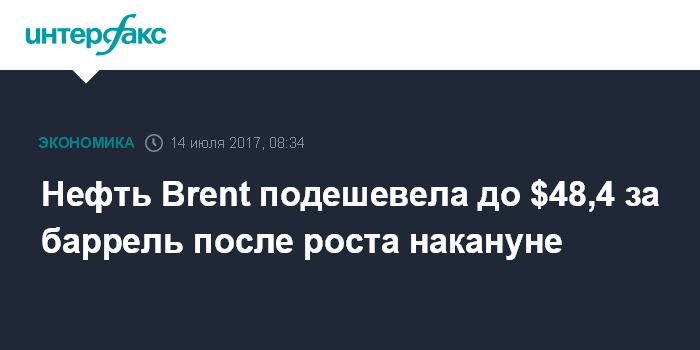 Нефть Brent подешевела до $48,4 за баррель после роста накануне