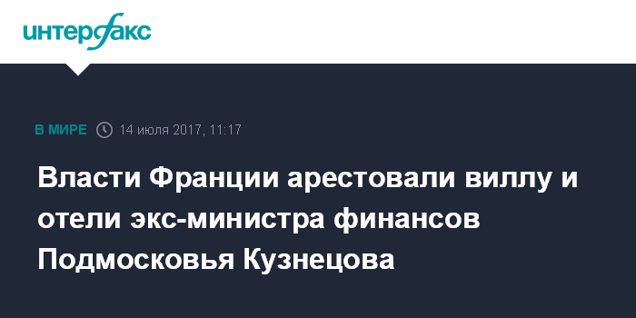 Власти Франции арестовали виллу и отели экс-министра финансов Подмосковья Кузнецова