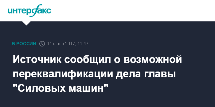 Москва. 14 июля. INTERFAX.RU - Уголовное дело, в рамках которого в четверг был допрошен генеральный директор ПАО "Силовые машины" Роман Филиппов, возможно, будет переквалифицировано на более мягкую статью, сообщил "Интерфаксу" информированный источник.