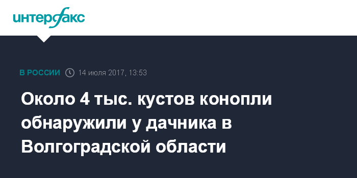 Москва. 14 июля. INTERFAX.RU - Полицейские обнаружили на дачном участке под Волгоградом около 4 тысяч кустов конопли, сообщается на сайте МВД РФ в пятницу.