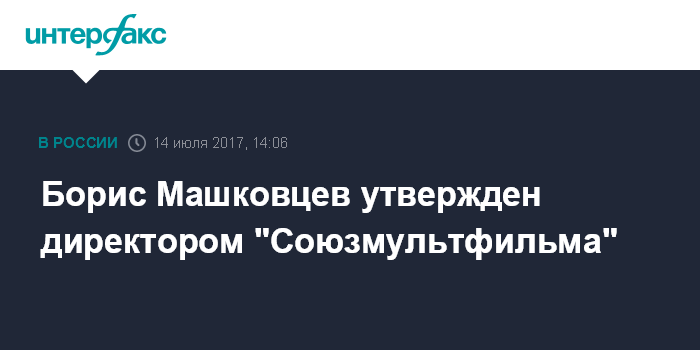 Москва. 14 июля. INTERFAX.RU - Директором "Союзмультфильма" назначен Борис Машковцев, до этого занимавший должность исполняющего обязанности директора, сообщили "Интерфаксу" в пресс-службе студии в пятницу.