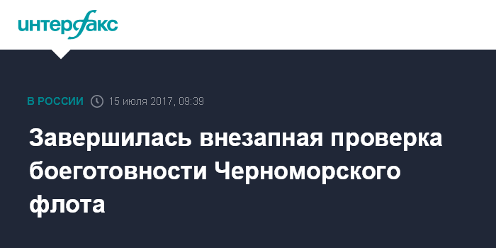 Москва. 15 июля. INTERFAX.RU - На Черноморском флоте завершилась проверка боевой готовности, в ходе которой по тревоге были подняты отдельные береговые и корабельные соединения ЧФ, проверена их способность выполнять задачи по предназначению, сообщил в субботу "Интерфаксу" представитель ЧФ капитан 1 ранга Вячеслав Трухачев.