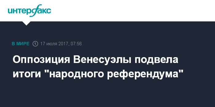 Москва. 17 июля. INTERFAX.RU - Против созыва учредительного собрания Венесуэлы на проведенном оппозицией в воскресенье так называемом "народном референдуме" проголосовали 7,1 млн человек, сообщили оппозиционные представители.