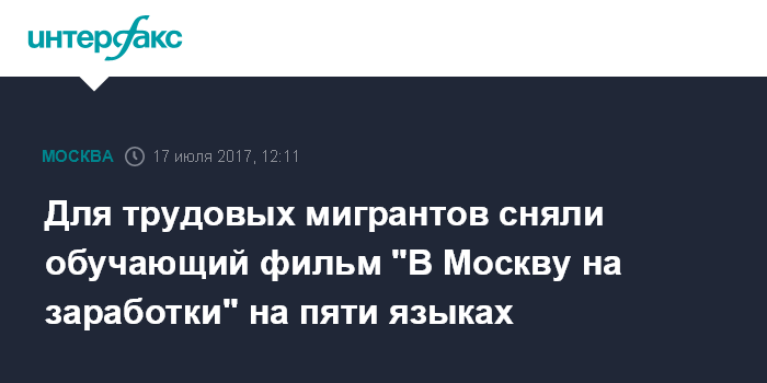 Москва. 17 июля. INTERFAX.RU - Обучающий мини-фильм в помощь трудовым мигрантам, созданный по заказу столичного миграционного центра, покажут в Узбекистане, Таджикистане, Молдавии, на Украине и в Азербайджане.
