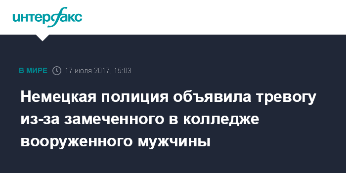 Немецкая полиция объявила тревогу из-за замеченного в колледже вооруженного мужчины
