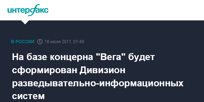 На базе концерна "Вега" будет сформирован Дивизион разведывательно-информационных систем