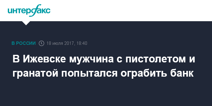 В Ижевске мужчина с пистолетом и гранатой попытался ограбить банк