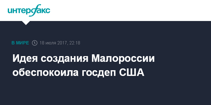 Москва. 18 июля. INTERFAX.RU - Во внешнеполитическом ведомстве США с тревогой восприняли сообщения об учреждении государства Малороссия на востоке Украины, но не считают нужным "удостаивать так называемых сепаратистов" подробным комментарием по этой теме, заявила во вторник представитель госдепа Хизер Нойерт.
