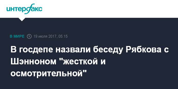 В госдепе назвали беседу Рябкова с Шэнноном "жесткой и осмотрительной"