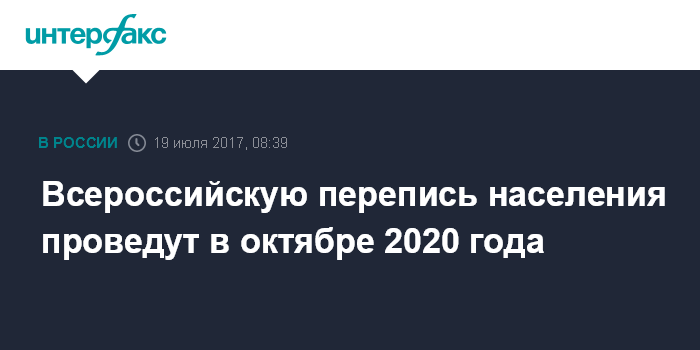 Правительство поручило Минэкономразвития до 21 августа подготовить и внести в проект постановления правительства о проведении Всероссийской переписи населения в 2020 году, предусмотрев проведение в 2018 году пилотного обследования (пробной переписи населения).