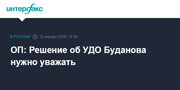 Москва. 15 января. INTERFAX.RU - В Общественной палате России призвали уважать судебное решение и воздержаться от эмоций в связи с условно-досрочным освобождением (УДО) бывшего полковника Юрия Буданова.
