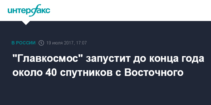 Москва. 19 июля. INTERFAX.RU - Компания "Главкосмос" до конца года запустит с космодрома "Восточный" порядка 40 малых спутников, заявил журналистам глава компании Денис Лысков.