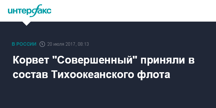 Корвет "Совершенный" приняли в состав Тихоокеанского флота