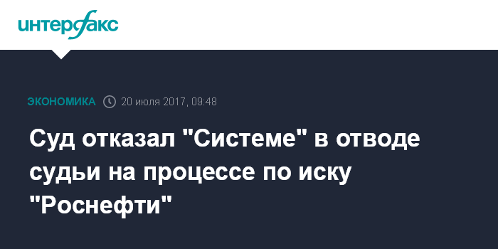 Суд отказал "Системе" в отводе судьи на процессе по иску "Роснефти"